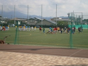 9:00〜12:00まで練習で、最後は4ピッチに別れてキーパーをつけての1対1の対人ゲーム。