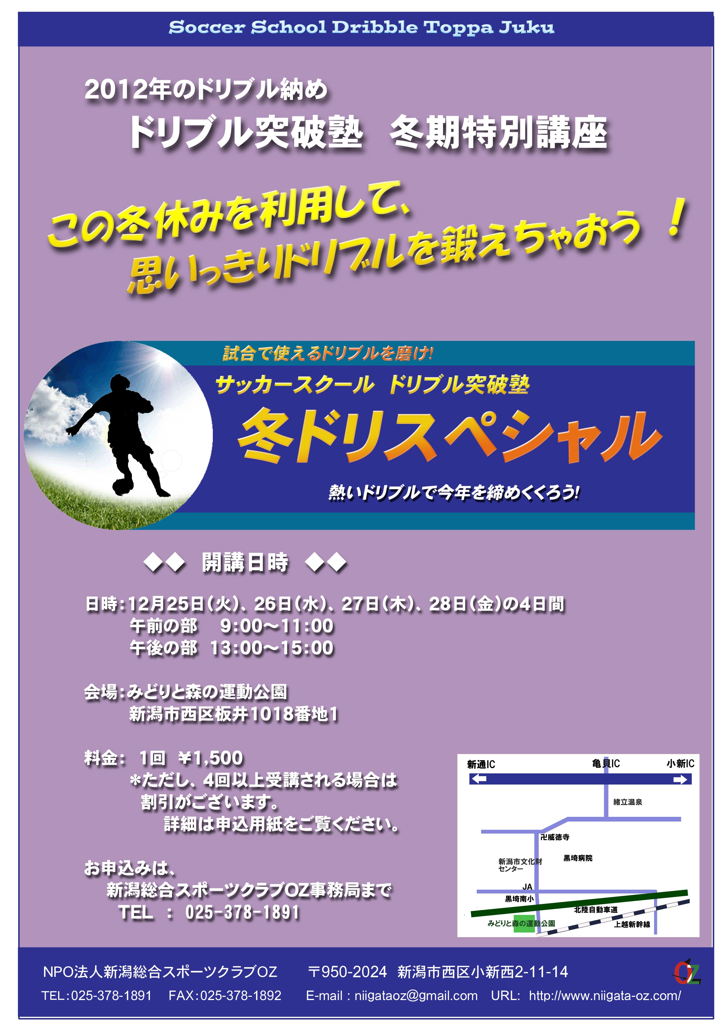 申込書記入の上でFAX025-378-1892もしくは直接コーチへ