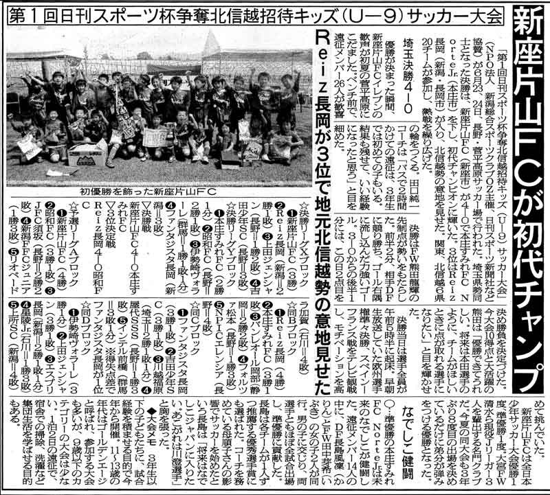 ≫ 日刊スポーツ新聞社杯 北信越招待キッズ(U-9)大会結果